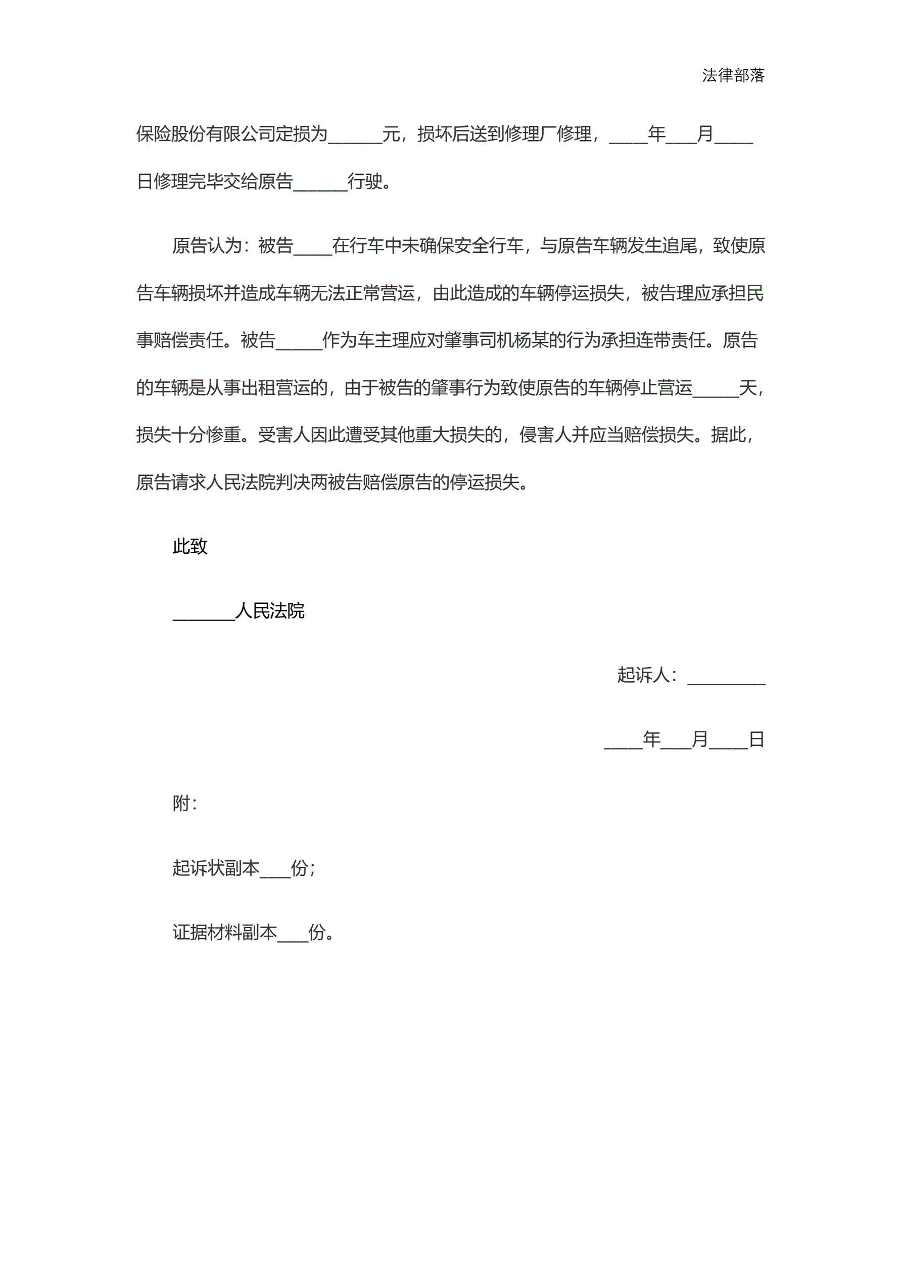 机动车交通事故起诉状范本