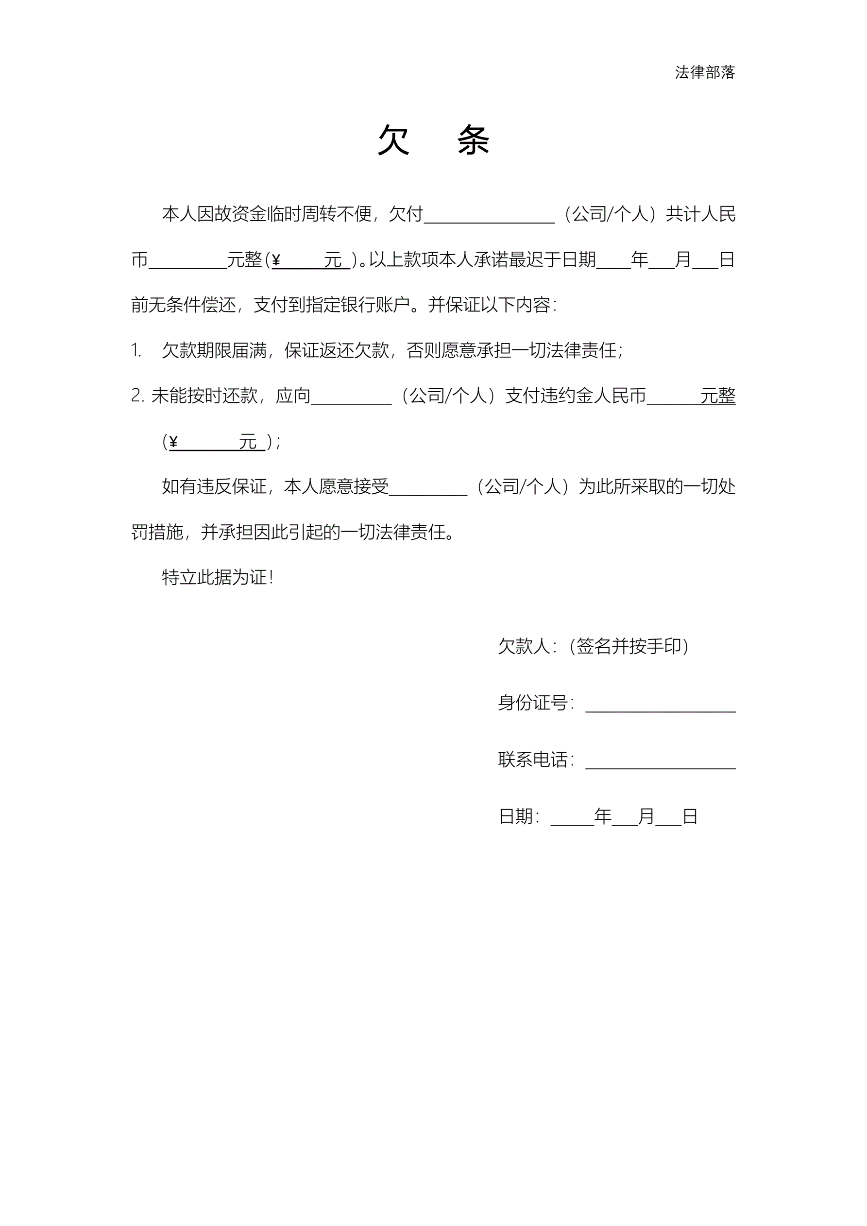 欠条范本三