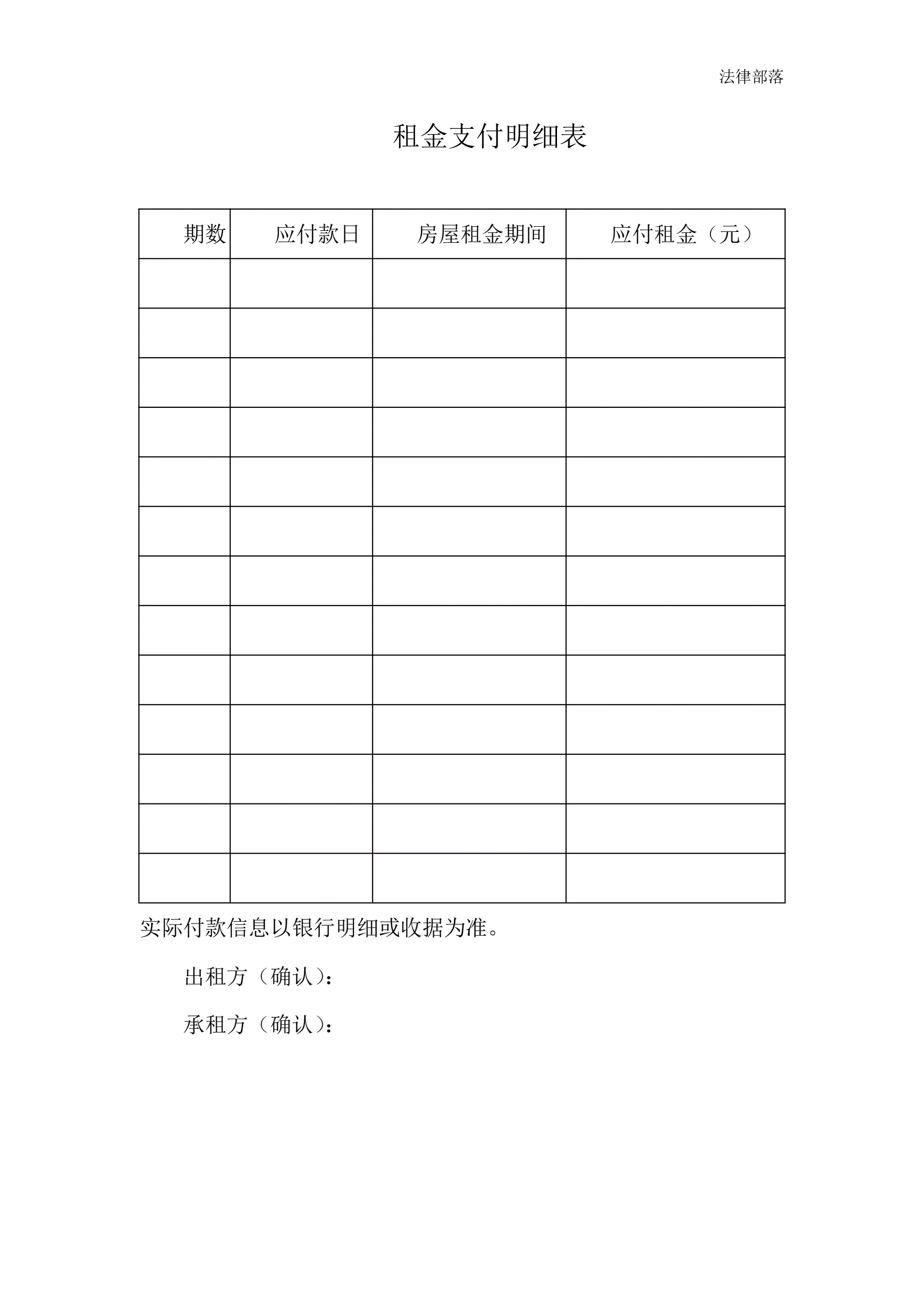 租金支付明细表