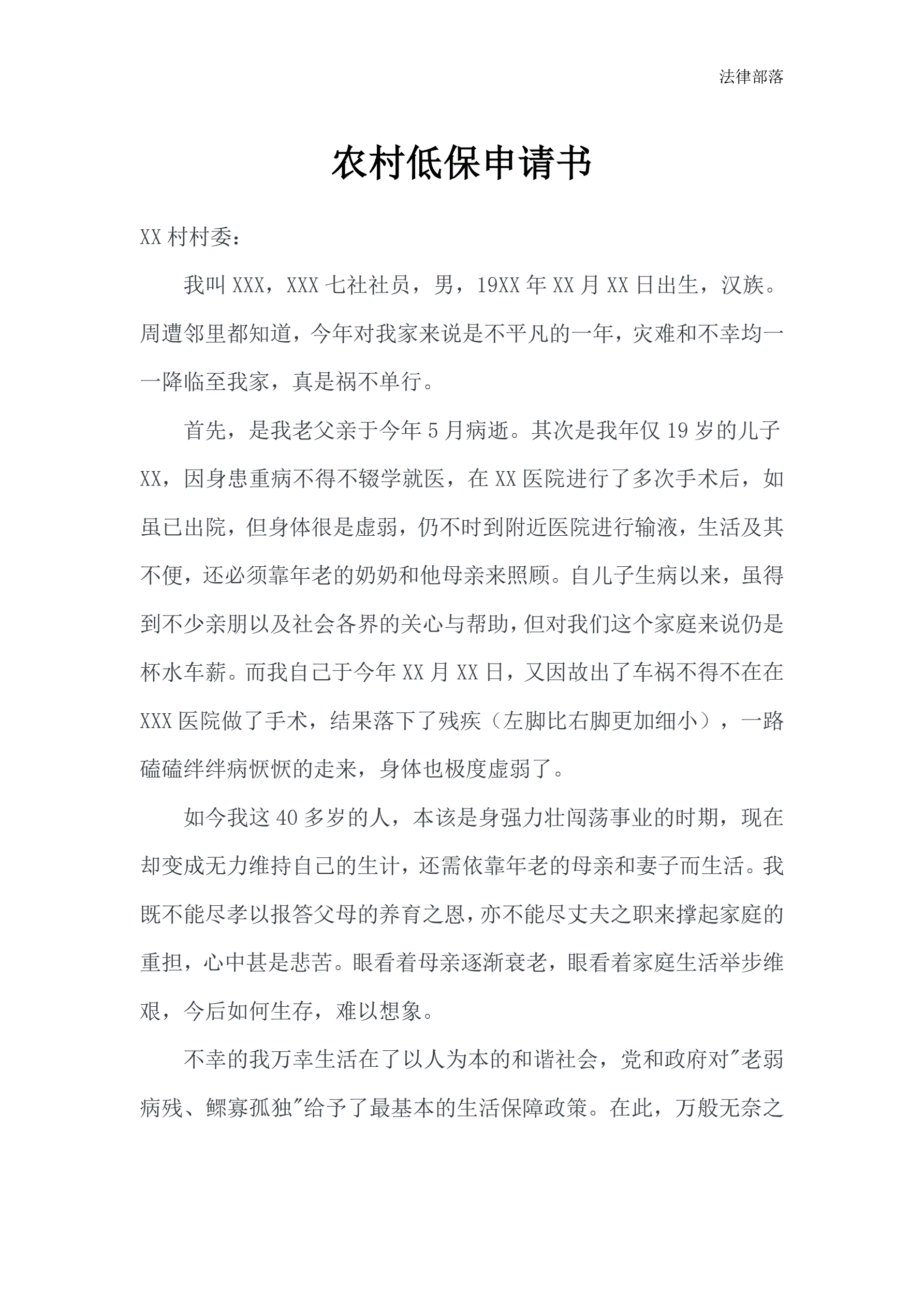 农村低保申请书