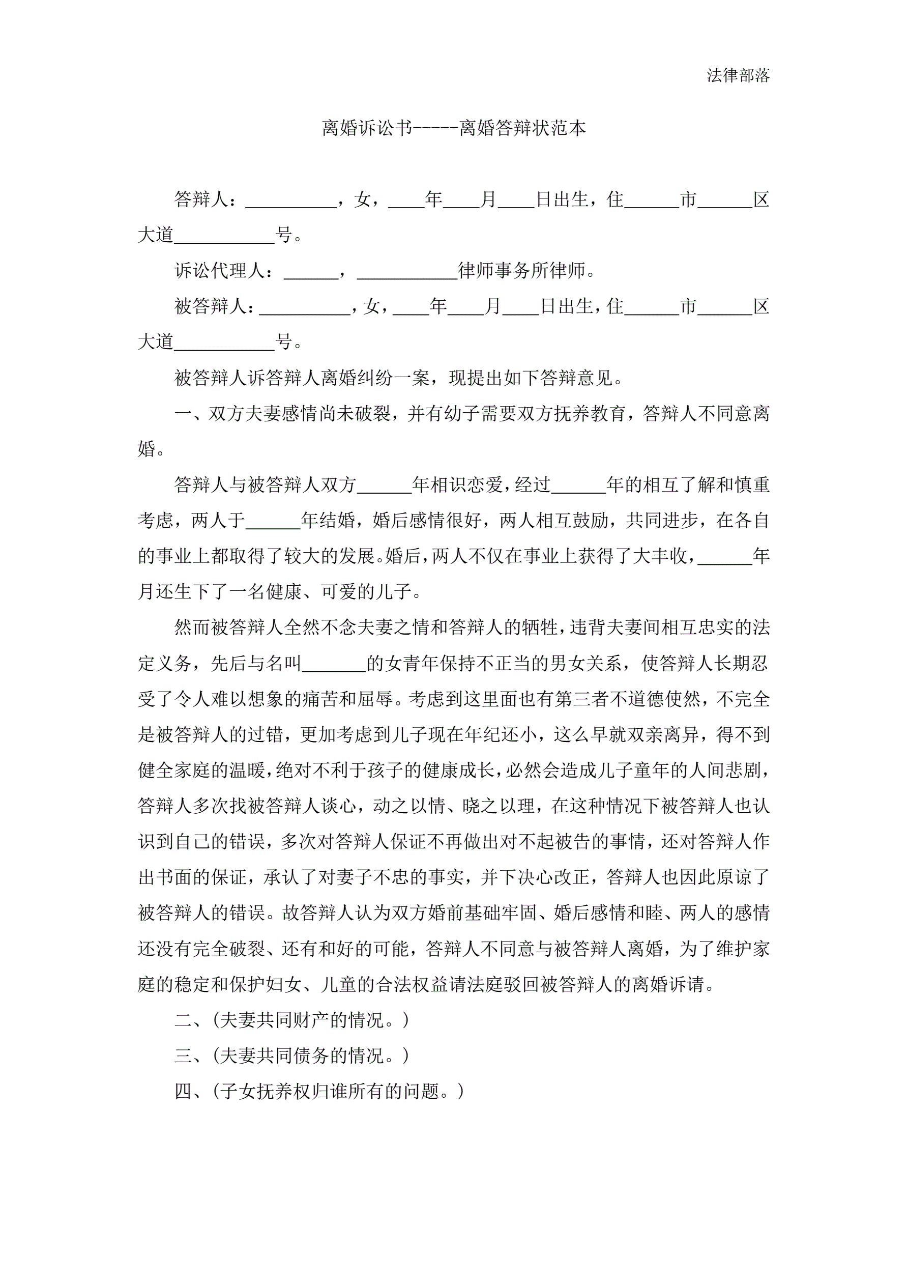 离婚答辩范本