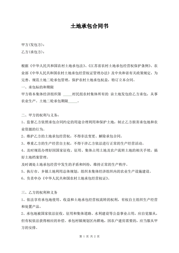 土地承包合同书