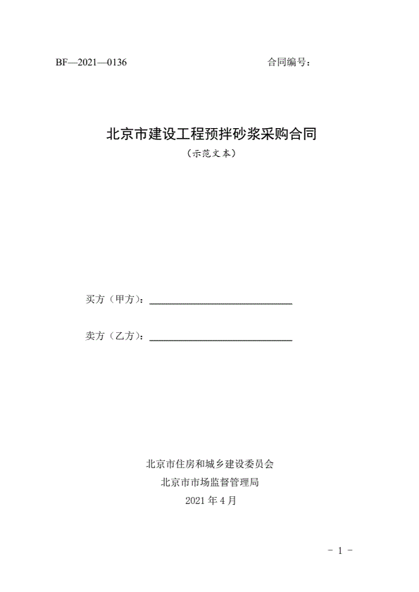 北京市建设工程预拌砂浆采购合同(2021)