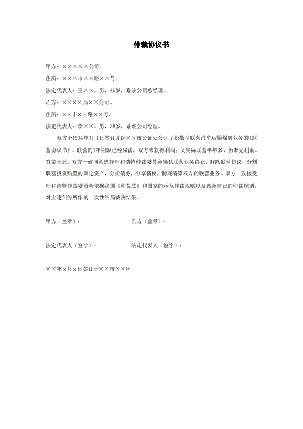 仲裁协议书