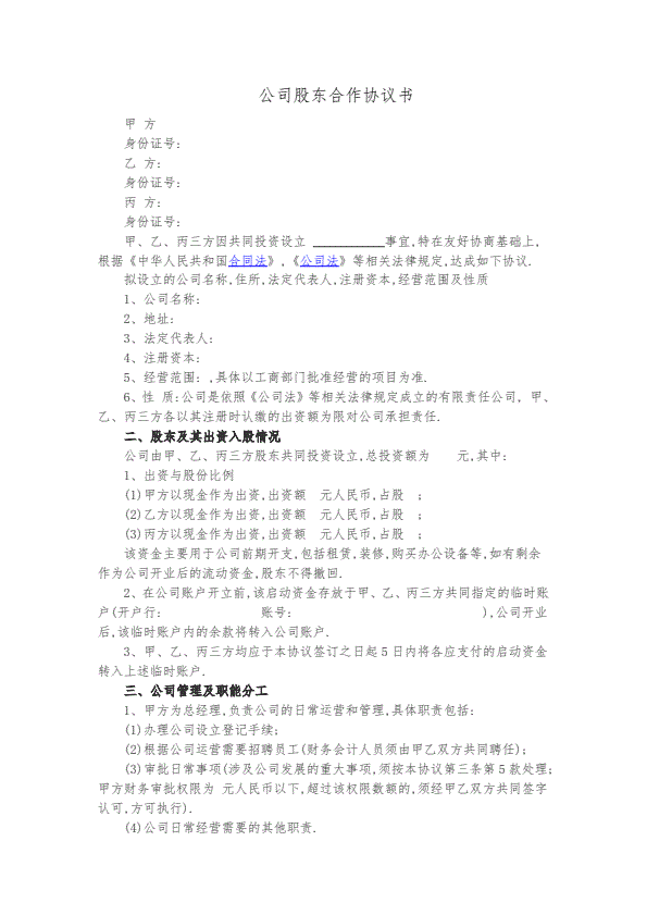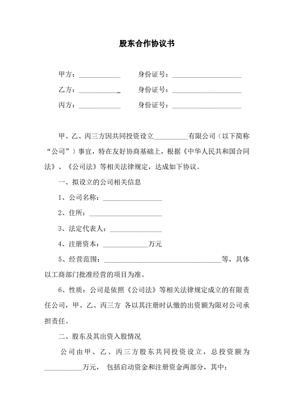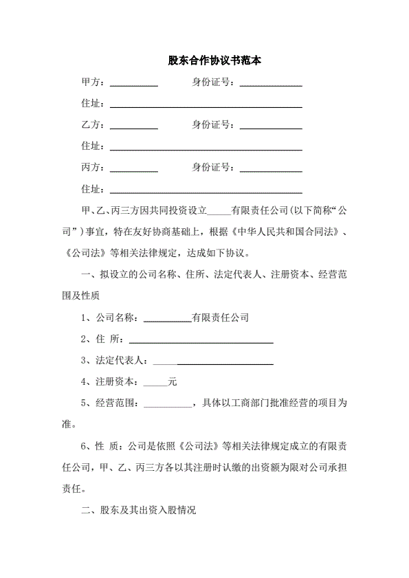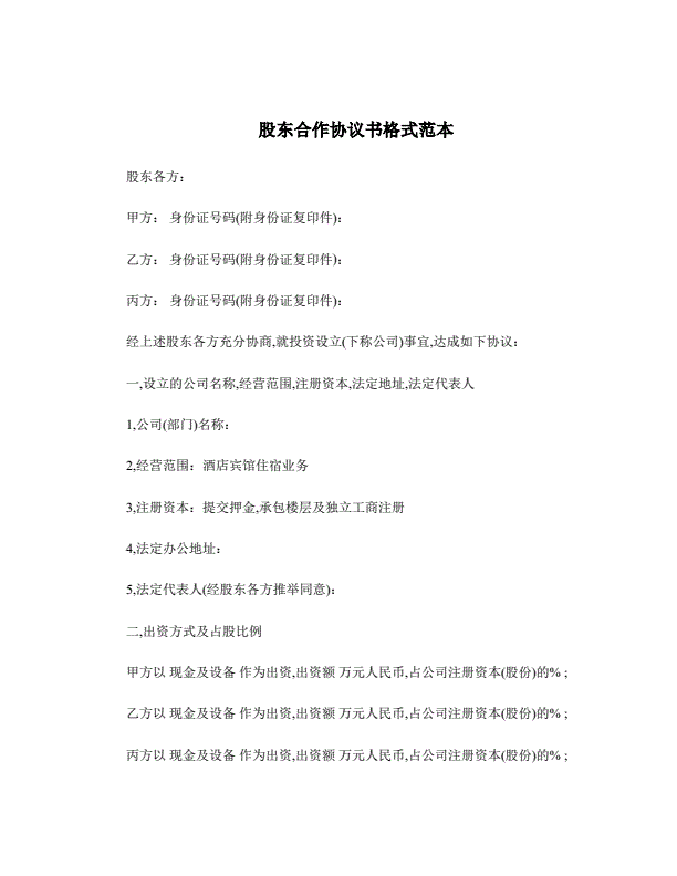 股东合作协议书格式范本