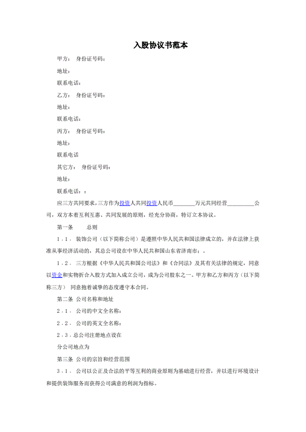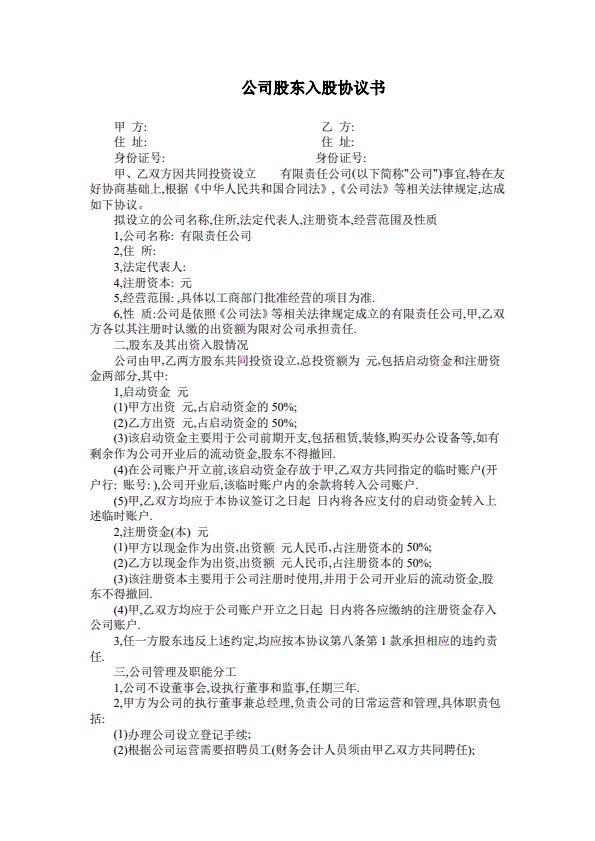 公司股东入股协议书