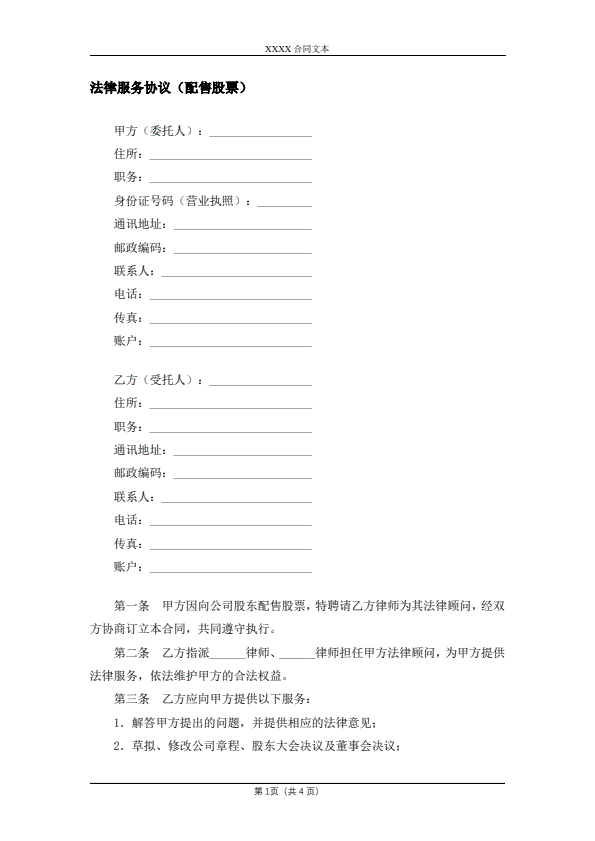 法律服务协议(配售股票)