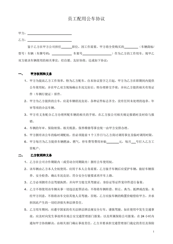 员工配用公车协议