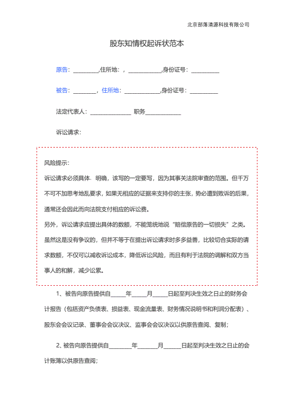 股东知情权起诉状范本