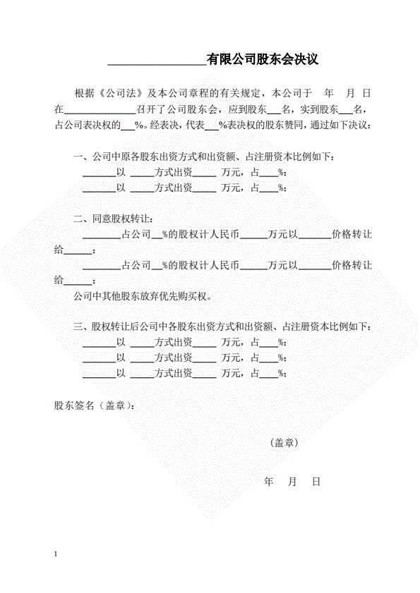 股权转让股东会决议(指导版)
