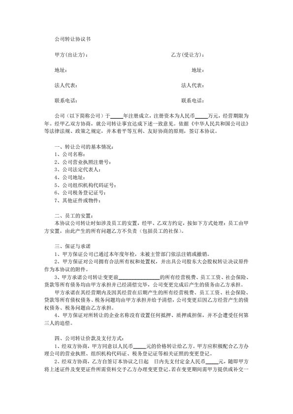 公司转让协议书