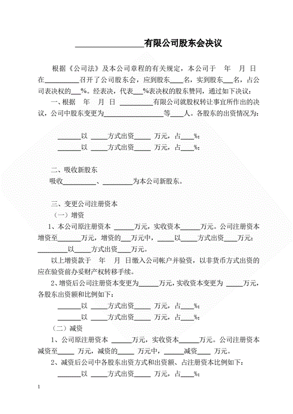股权转让股东会决议(增减资)(指导版)