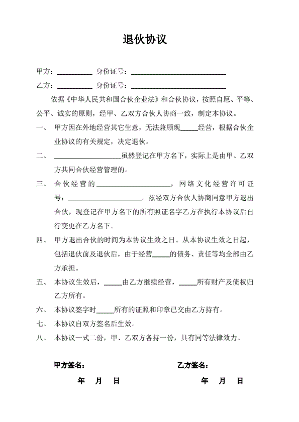 入伙协议和退伙协议
