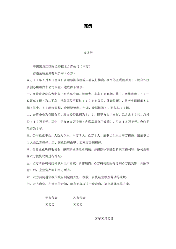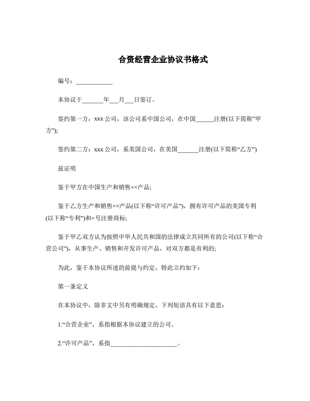 合资经营企业协议书格式