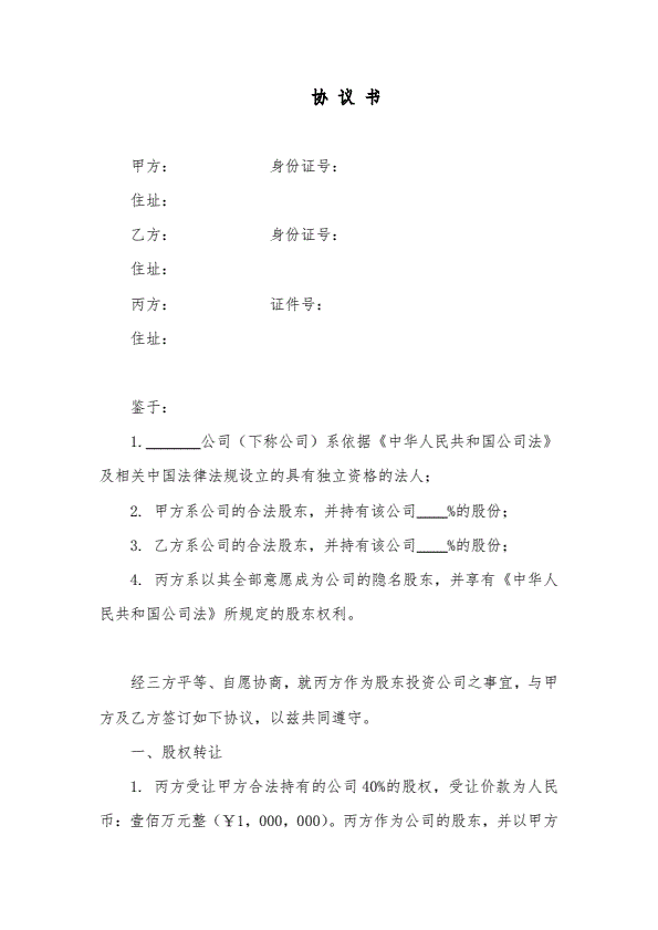 隐名股东协议书