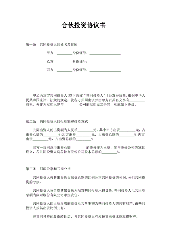 合伙投资协议书范本