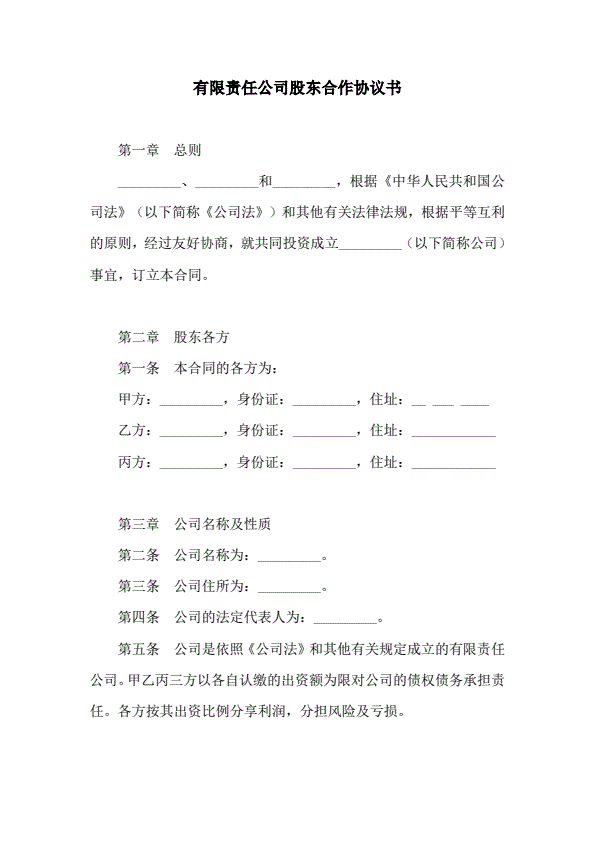 有限责任公司股东合作协议书