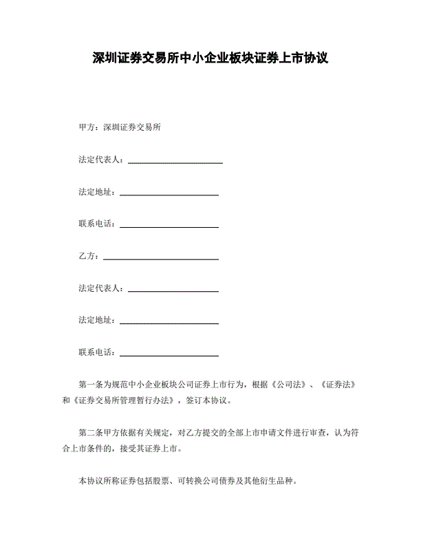 深圳证券交易所中小企业板块证券上市协议