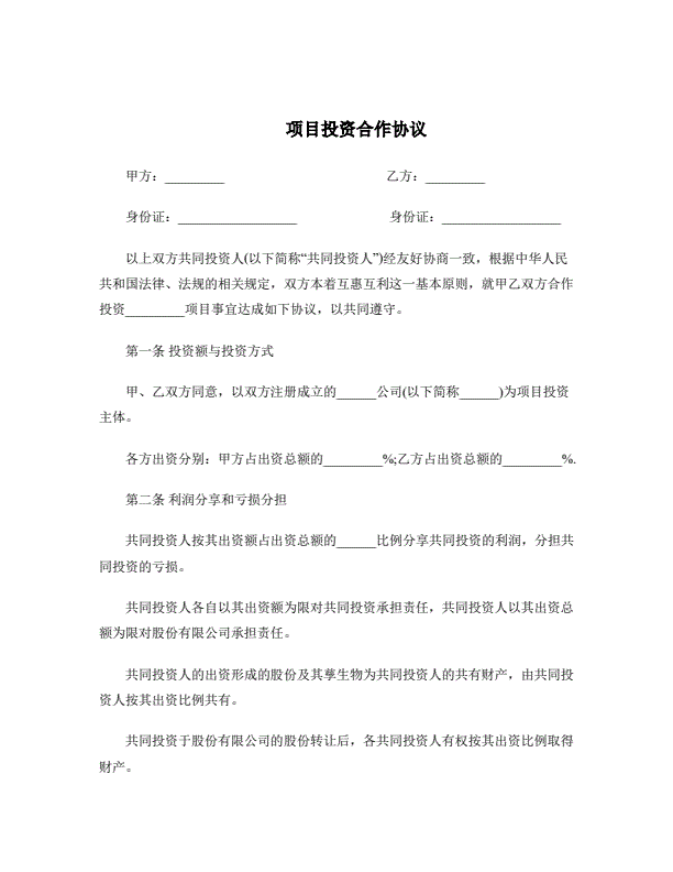 投资合作协议书范本