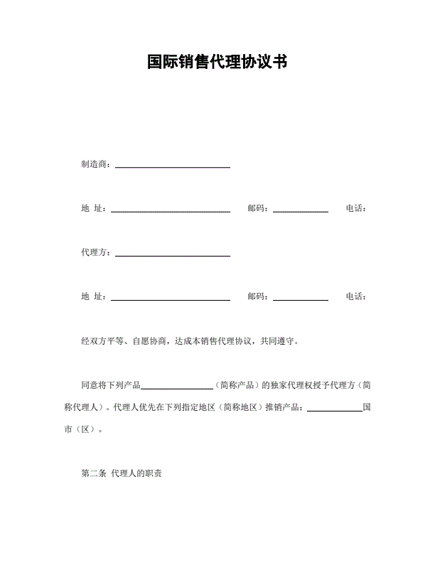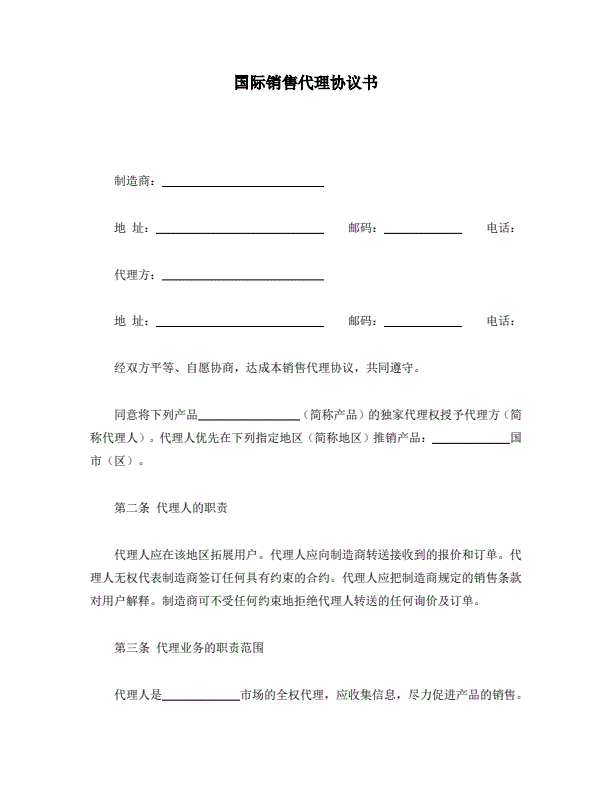国际销售代理协议书