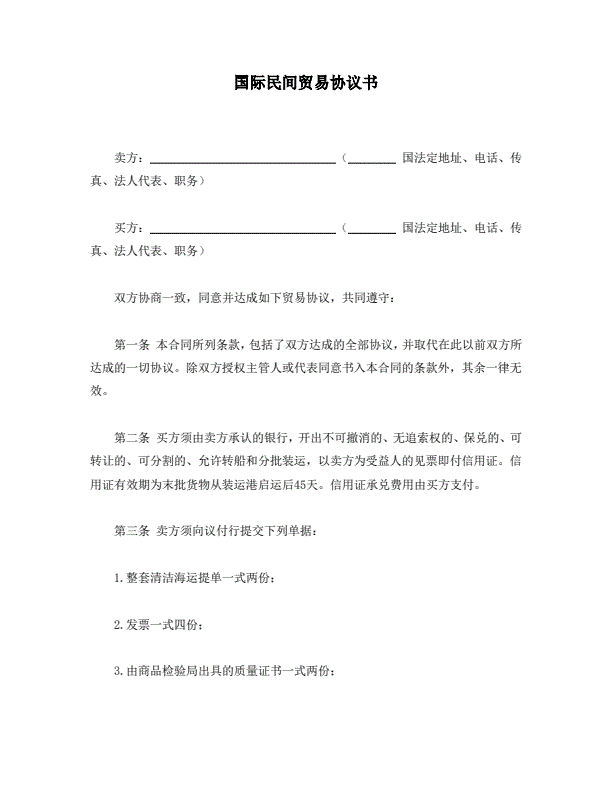 国际民间贸易协议书