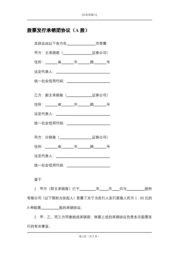 股票发行承销团协议(A股)