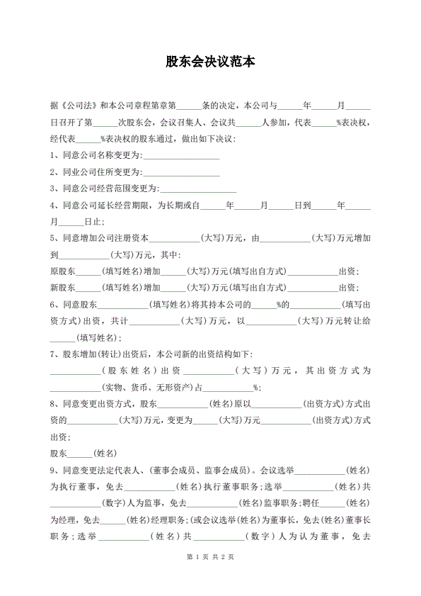股东会决议范本