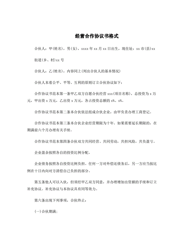 经营合作协议书格式