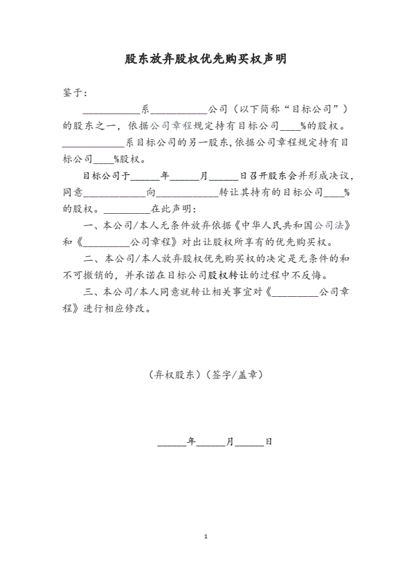 股东放弃股权优先购买权声明(转让)(指导版)