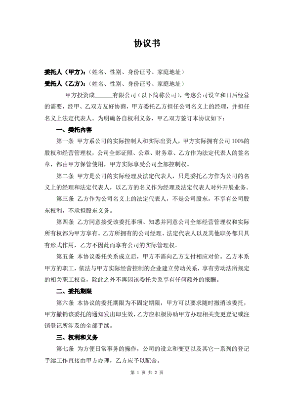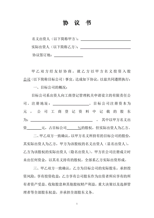 名义股东协议书