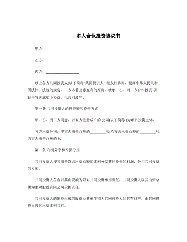 多人合伙投资协议书