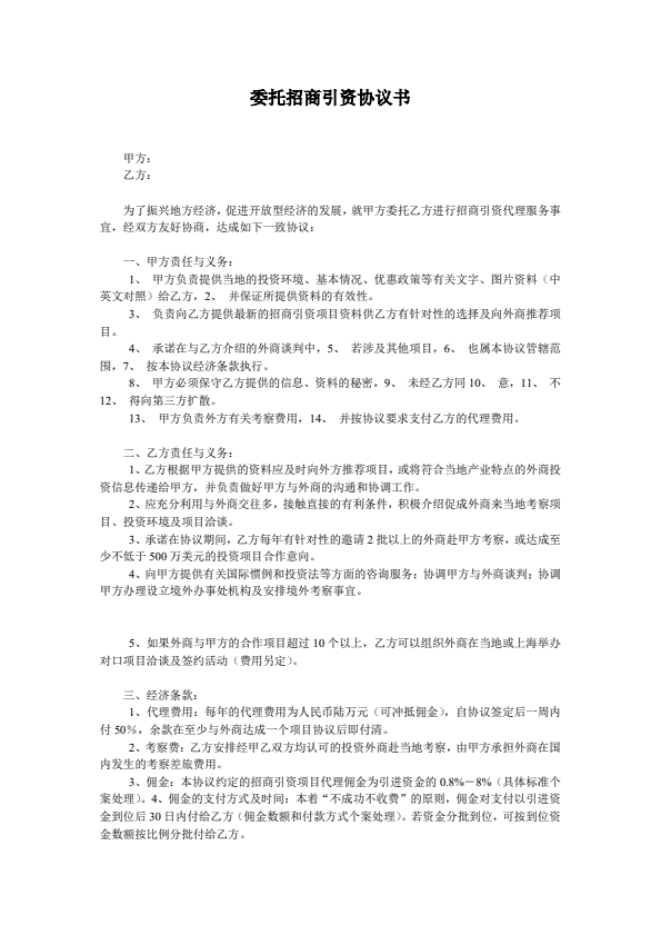 委托招商引资协议书