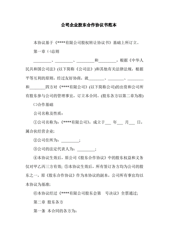 公司企业股东合作协议书范本