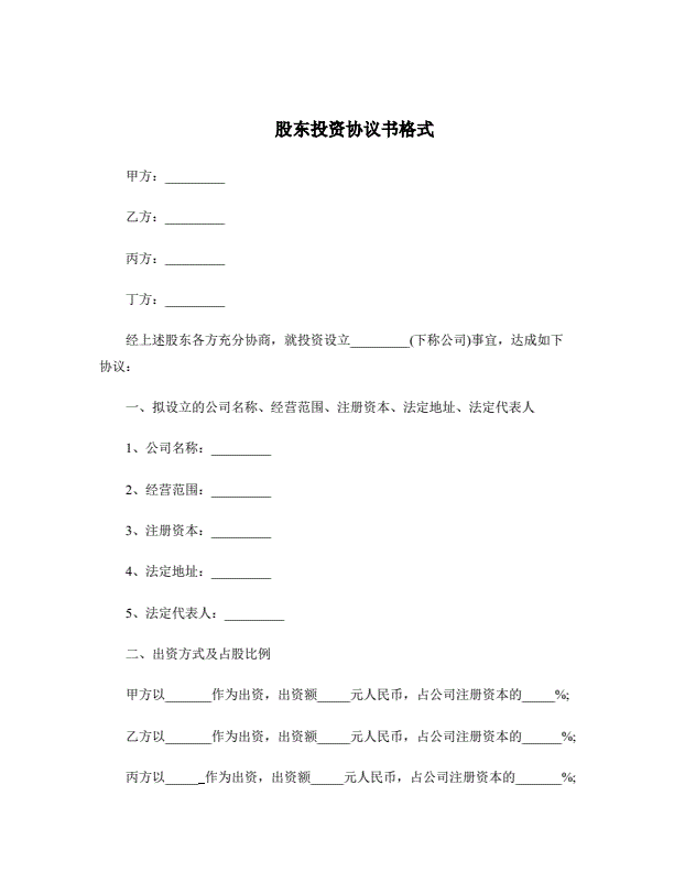 股东投资协议书格式