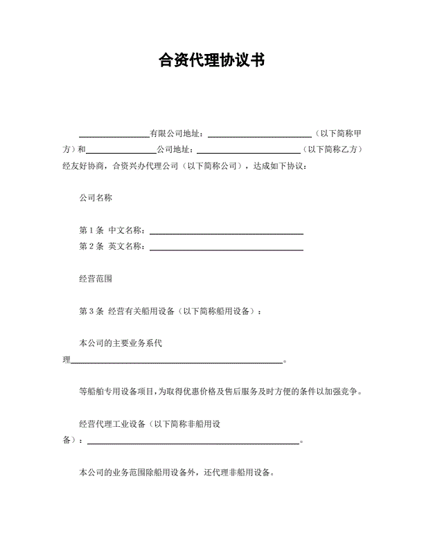合资代理协议书