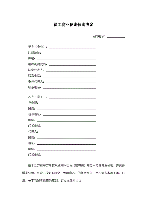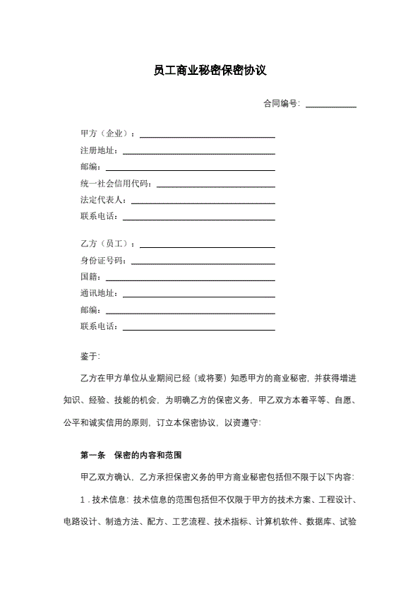员工商业秘密保密协议