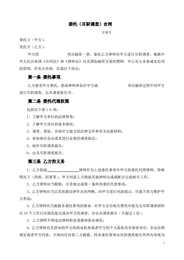 尽职调查委托协议