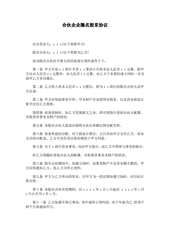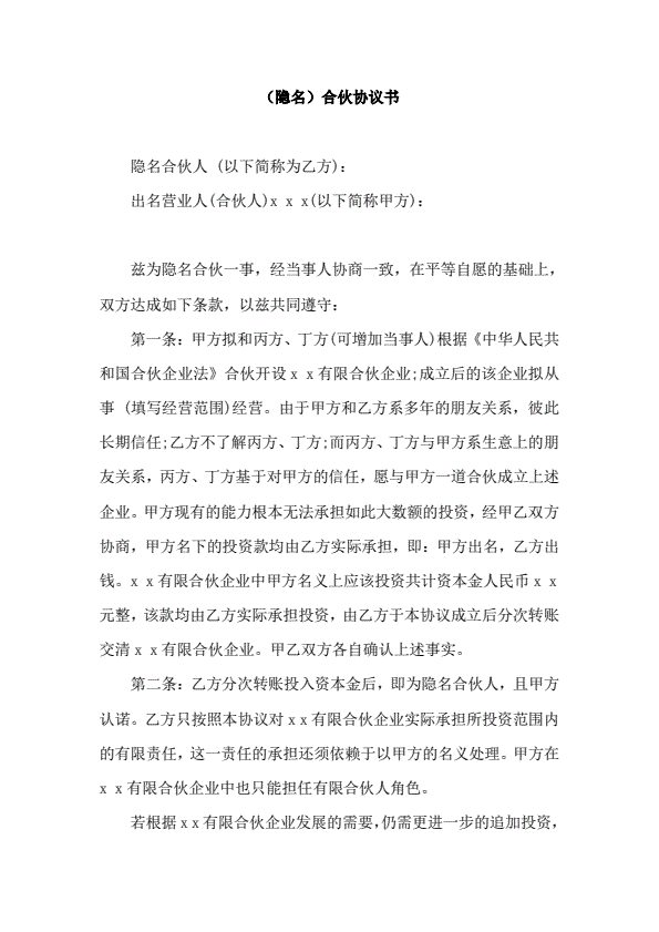 隐名合伙协议