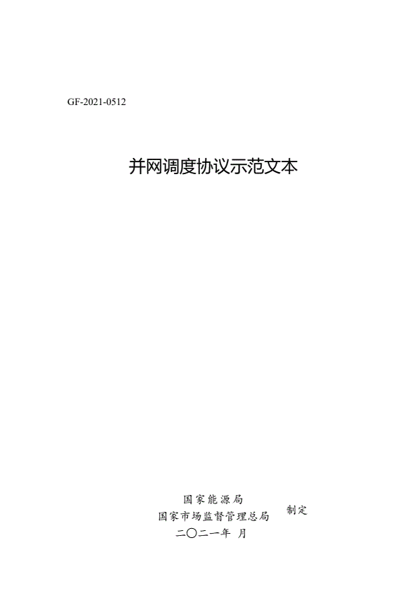 并网调度协议示范文本GF-2021-0512
