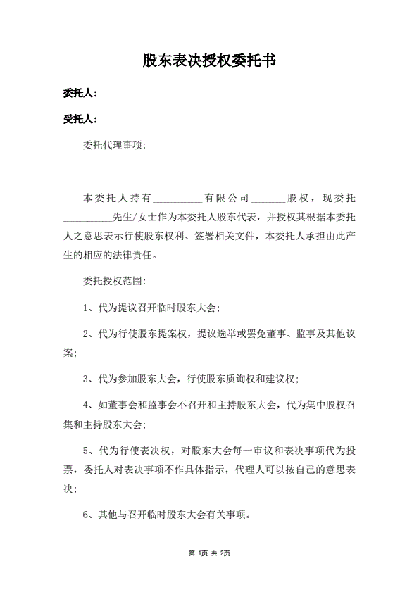 股东表决授权委托书(指导版)