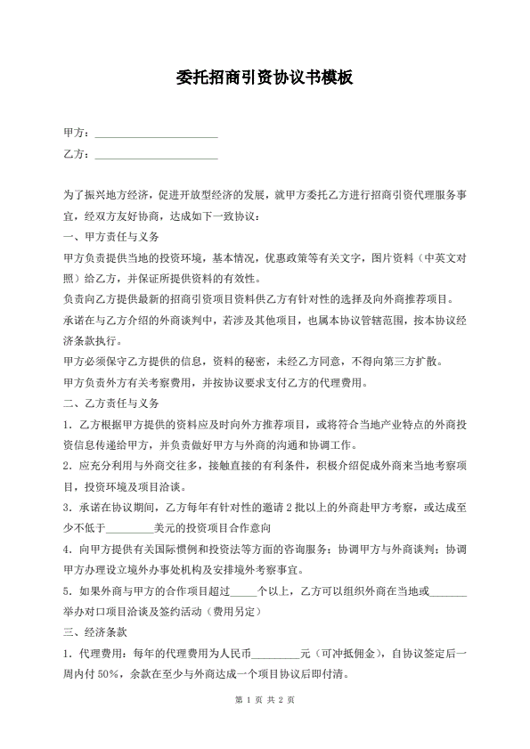 委托招商引资协议书模板