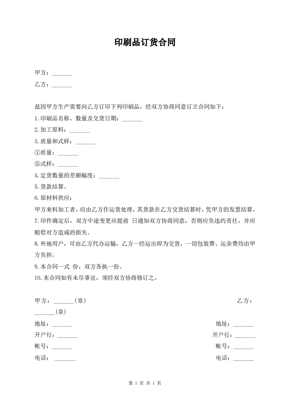印刷品订货合同