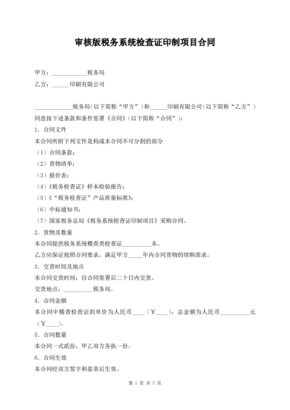 审核版税务系统检查证印制项目合同