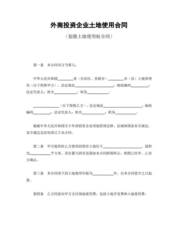外商投资企业土地使用合同(划拨土地使用权合同)