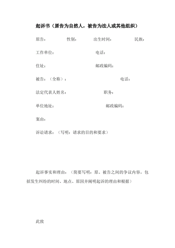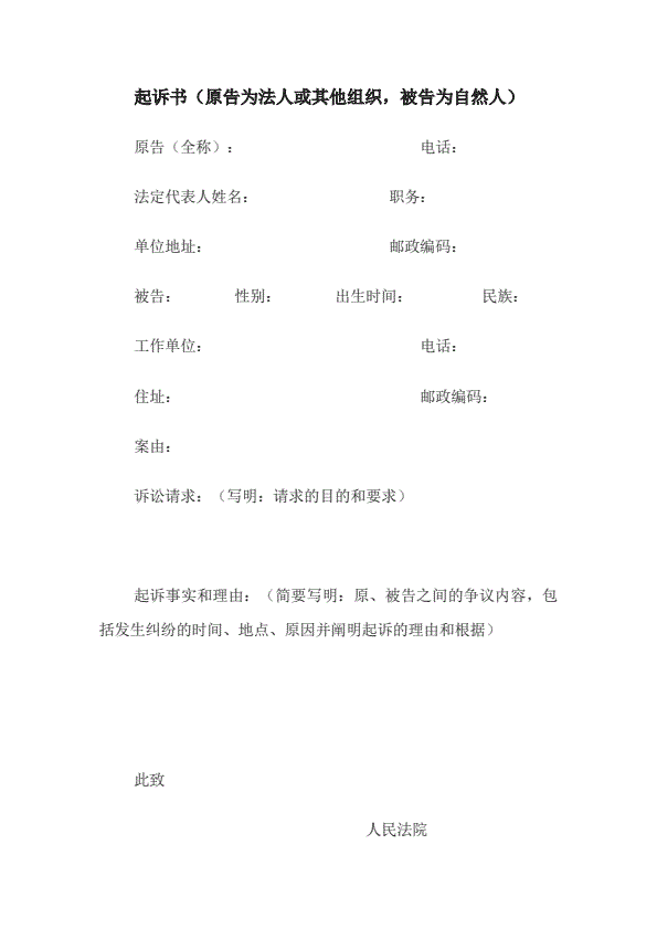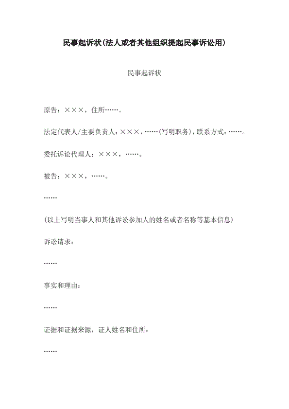 民事起诉状(法人或者其他组织提起民事诉讼用)