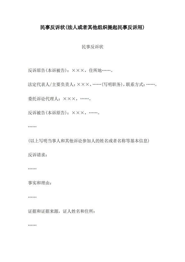民事反诉状(法人或者其他组织提起民事反诉用)