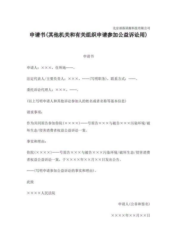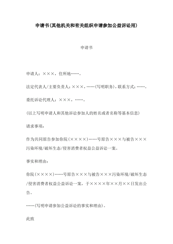 申请书(其他机关和有关组织申请参加公益诉讼用)