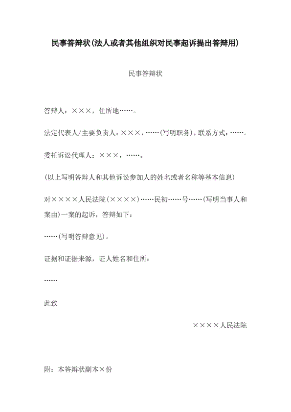 民事答辩状(法人或者其他组织对民事起诉提出答辩用)