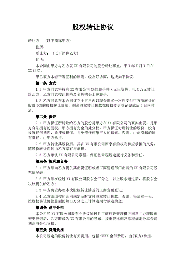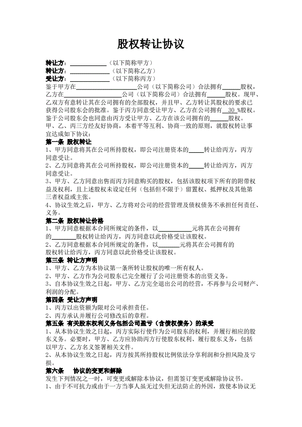 股权转让协议通用版