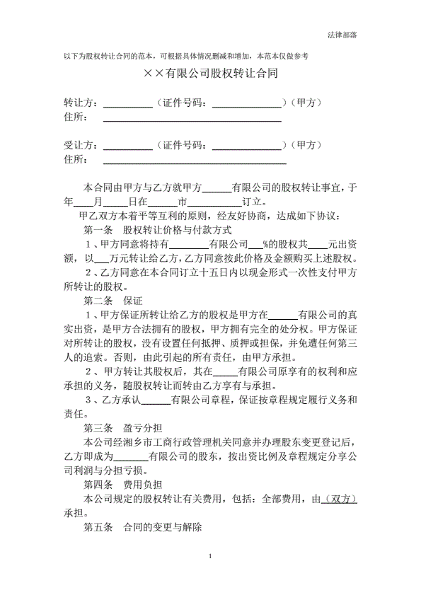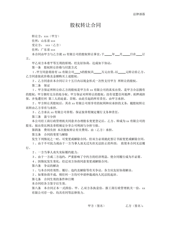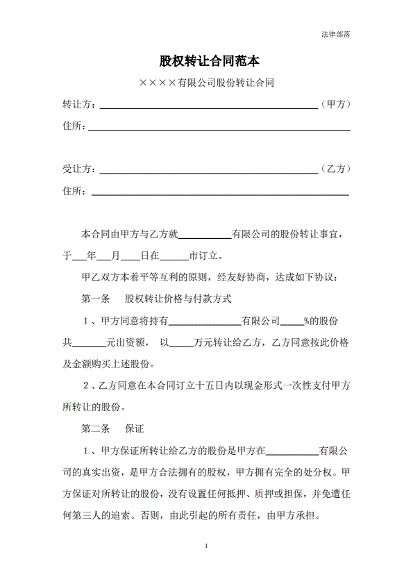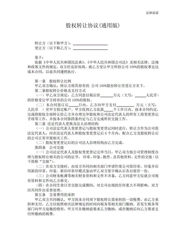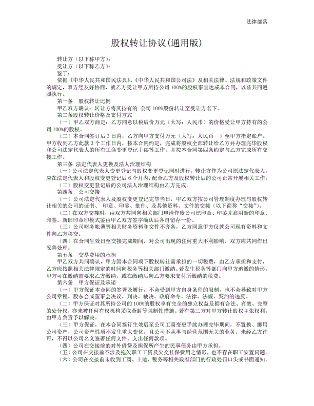 通用股份转让合同